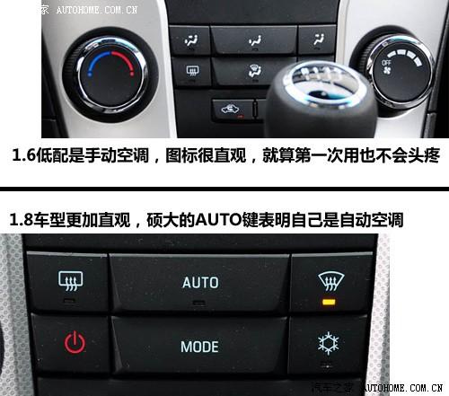 区分1.6和1.8的中控看起来比较困难,实际主要观察空调部分的区别就能明了,科鲁兹不管是手动还是自动空调都挺简洁,上手不需要什么琢磨的时间,不过上部的音响控制区就有些晦涩了,很多按钮如果不尝试看字面永远也不知道什么功能,例如TP、AS、FAV等。