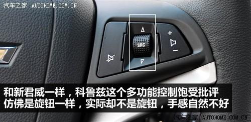 方向盘第二个不足来自于多功能按钮:科鲁兹的这个多功能按钮设计和使用和新君威一模一样,这个旋钮模样的按钮其实是不能旋转的,上下推拉的感觉很差,因为人都会把圆形物体默认为旋转形式,于是感官就会很不舒服。