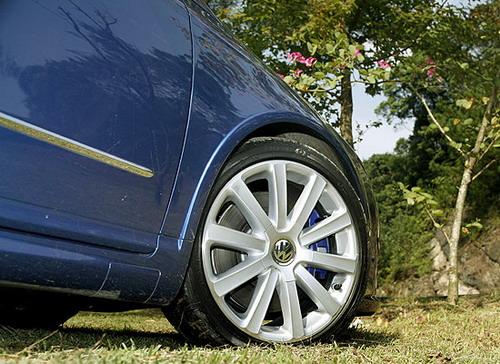 有别于其它改装厂惯用红色代表性能基因,大众的运动R家族则选用蓝色作为代表。除了车身烤漆外,靛蓝色也成为妆点轮圈的重要元素。R36脚踏尺码235/40 R18的大脚扁平跑胎,搭配造型简约的10幅Omanty铝圈;其后则是R家族独有的蓝色刹车卡箝,隐喻强大的制动性能。