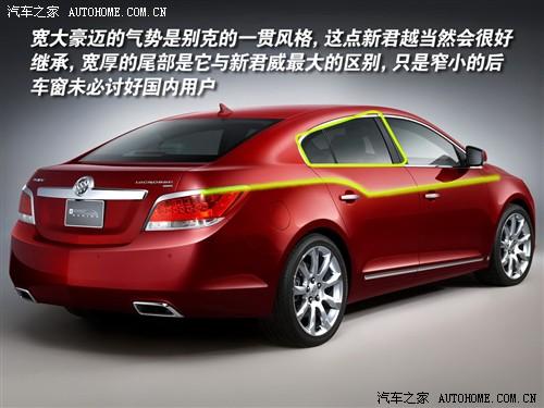 车型上比较有特点的,是新君越波浪形的腰线,从前翼子板开始先稍向下倾斜,到达后门把手时突然上翘并最后与尾灯线条衔接,视觉上很好地起到了“提臀”的作用,是新君越的尾部看上去更加丰满。