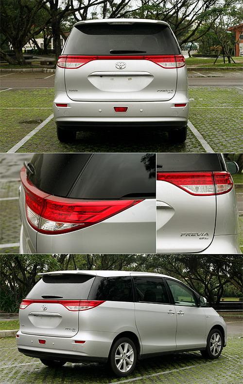 车尾部分,小改款普瑞维亚的变动集中于尾灯部分,原本平面的设计,在新车上改为了立体外凸样式,从侧边望去形成类似鸭尾的造型,和上方的尾翼相互呼应,设计颇具巧思;另外,小改款普瑞维亚尾灯内的设计也经小幅更动,在视觉效果上更具有简洁美感。