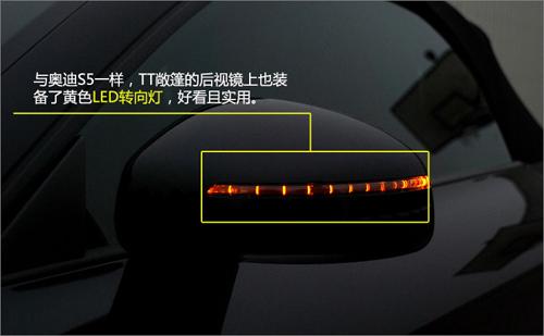 在车头大灯下使用LED装饰灯大获成功之后,奥迪在TT敞篷的后视镜上亦装备了黄色的LED转向灯,在夜间行驶时作用很大。