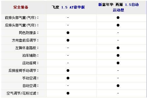如果拿1.5手动豪华型做对比的话,与飞度对应的是新嘉年华1.5手动运动版,也是新嘉年华最富吸引力的一款车型。两车的价格相差2900元,而新嘉年华在安全配置上却胜出对手一大截,前后排头部气帘提升了运动版的被动安全性能,倒车雷达也让全系无此配置的飞度感到脸红,而新嘉年华的自动空调也绝对称得上小型车里难得的高配了。