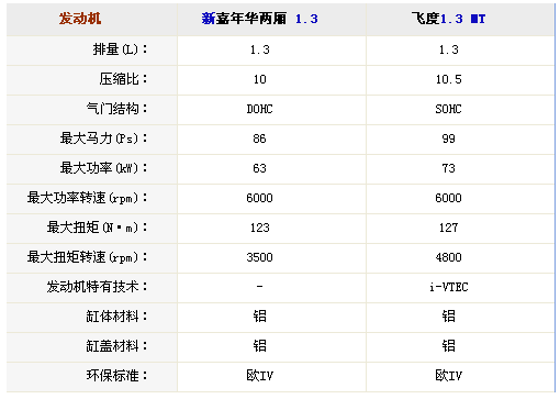 前面已经说过,新嘉年华和飞度都是1.3和1.5两个排量,如果只看发动机参数的话,那飞度显然要强出太多了。先来看1.3排量,飞度多出13马力和4N·m。1.5升发动机则差得更多,飞度比新嘉年华高出17马力和7N·m。尽管参数上不具备优势,但是新嘉年华针对城市游弋的特征要更加明显,最大扭矩到来的比飞度要早很多,尤其是1.3升车型,两者最大扭矩输出转速相差了1300转之多。