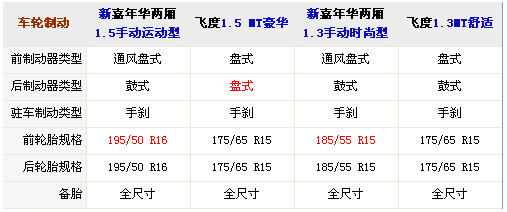 车轮制动 新嘉年华两厢1.5手动运动型 飞度1.5 MT豪华 新嘉年华两厢1.3手动时尚型 飞度1.3MT舒适