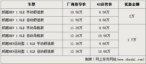 凯越HRV是04年10月上市销售的,其凭借流畅的外形博得了不少消费者的喜爱。07年10月份,上海通用别克又推出了增加前后包围套件的运动版凯越HRV,流畅的外形在前后包围的装饰下彰显运动。近日根据网上车市价格检测系统显示,凯越HRV最高优惠2万元,导航版与运动版车型优惠升至1.7万元,具体详情请看下表: