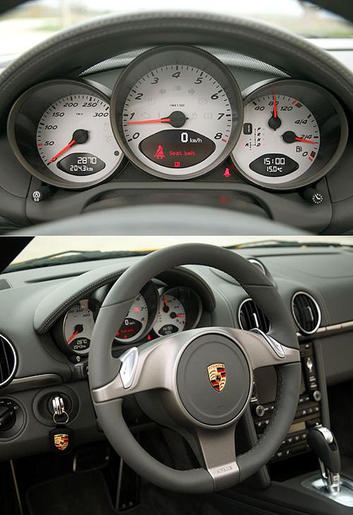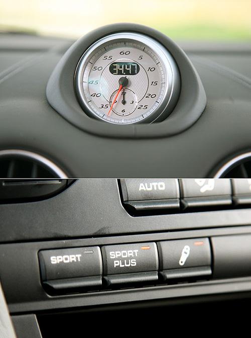 而中控台上方的指针式马表,正是在911小改款上所试用过的Sport Chorono Package Plus系统,这次保时捷亦提供Boxster的车主选购。同样的,使用者只要按下中抬台上的Sport Plus按键,便可以在计算机的协助下,享受6000转无失误起步以及性能化的换档控制。