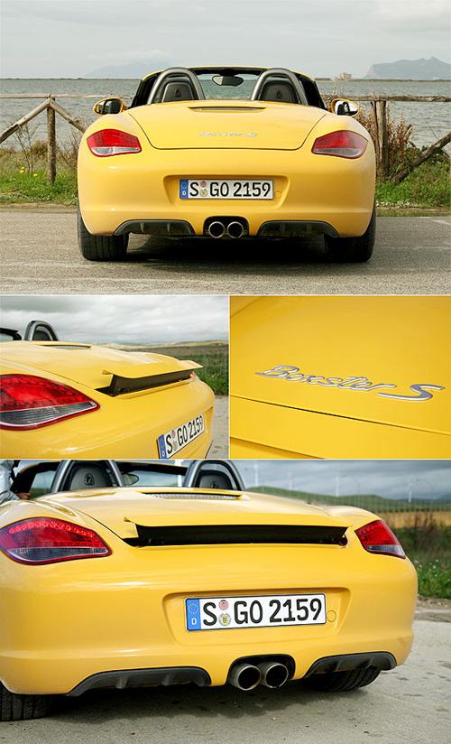 后方的排气管,仍是Boxster招牌的中置式设计,以紧密并排的双管,加上刻意强调的整流器,带来赛车般的风格。而Boxster平板式升降的后扰流板,依旧可以自动升降及手动升降,提供高速行驶更佳的下压力表现。