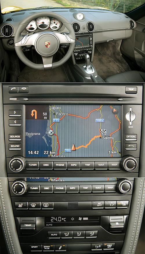 配合PDK变速箱换上与911 PDK相同的3辐式方向盘,以及闪烁着PDK字样的排档杆,是Boxster小改款车室内最大的不同。而中控台上的PCM多媒体系统以及空调系统接口,亦比照911进行调整。