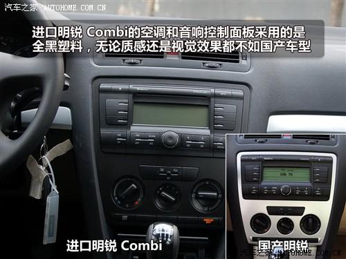 进口明锐 Combi的内饰采用了全黑内饰,整体的布局和国产车型完全一直。只是在音响和空调控制面板上有所不妥那个,国产车采用的是金属质感的银色拉丝面板,而进口明锐 Combi使用的则是普通的黑色塑料面板。无论从质感还是视觉效果都不及国产车型。