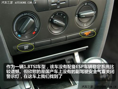 作为1.8TSI手动挡车型,我们在中控台上并没有发现ESP车辆电子稳定系统的按键,不过我们找到了副驾驶安全气囊关闭指示灯。经真实,该车的确没有配备ESP,比较遗憾。而国产明锐 1.8T 手动夺金版上则配有ESP,可见国产车的配置也还算厚道。