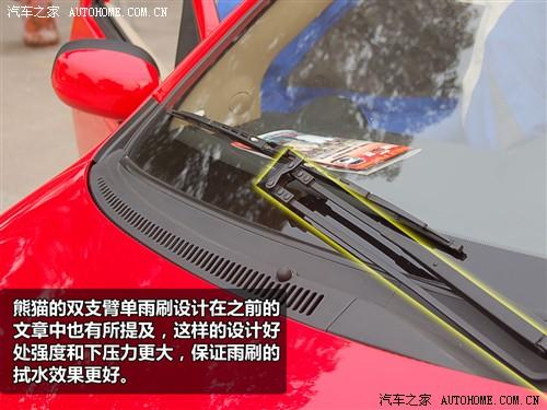 双支臂单雨刷是熊猫和其他微型车的不同之处,这样的设计好处是能够提供给雨刷更多的贴合压力,同时其本身的强度也更高,拭水效果当然也就更好了。不过缺点就是更换雨刷的时候可能会有些小麻烦,当然这也是仁者见仁的事儿了。