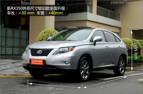 全新的雷克萨斯RX350在车身尺寸方面完全超过老款车型,其中轴距长出了25mm,达到了2740mm,这意味新款雷克萨斯RX350在内部尺寸空间方面完全超过了老款车型。在前后轮距方面,新款RX350也同样超出了老款车型,达到了1630mm和1625mm。新款雷克萨斯RX350经过了重新设计,风阻系数由原来的0.35降到了0.32。