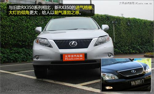 新款RX350的外观采用了新的设计,前大灯变得更加锋利,镀铬的进气格栅的纵向面积也被拉伸,前保险杠上也出现了如前大灯一样锐利的棱线,所有的新设计让RX350系列看起来变得更加粗旷更加饱满,更加突出了侵略性。侧身线条同样有较大的变化,低风阻侧车身线条的增加,提高了车辆在高速行驶时的稳定性。