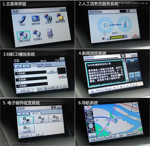 熟悉了Remote-Touch按钮的操作,我们现在来看看车载电脑究竟包含了那些特殊的功能。个人认为该系统最大的创新之处在于其大胆地在电脑中植入了雷克萨斯智能副驾LEXUS G-BOOK。该系统可以借助车载智能通信系统,利用装载在车辆上的通信终端,通过无线网络与数据中心连接,为顾客实现安心、安全、便利、术士的驾车体验。这套服务在初期阶段将为顾客提供紧急救援服务、防盗追踪服务、道路救援服务、保养通知服务、话务员服务、咨询提供服务和G路径检索服务等其中便捷、实用的服务内容,让驾车成为一种享受。