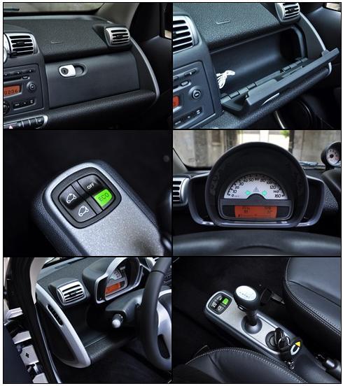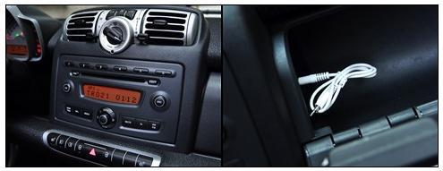 说实话,在车内我还真没找到什么特别实用的设计,想必最大的原因是受到了空间的限制。要说不大的亮点,音响系统算是其中一个,smart为其标配了CD+AUX外接音频功能组合,在实际使用中,该套音响的播放能力还是不错的,由其在低音的表现上,如果不是要求太苛刻的话,我想连改装的必要都没有了。