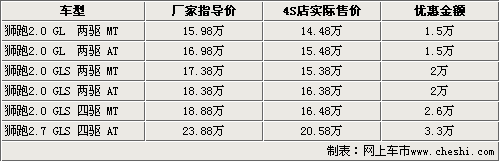 新老狮跑齐降价 最高优惠3.3万