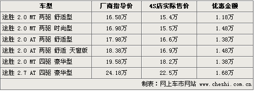 现代途胜最高优惠近1.7万