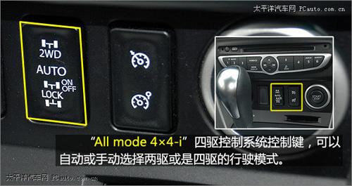 LOCK:在这种模式下,中央离合器片被锁止,前后轴按照57:43的扭力来进行分配。不过逍客并没有配备越野低速挡。