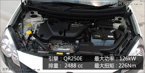 作为一款销往世界各地的车型,KOLEOS提供了丰富的动力选择,目前有4缸2.0升低增压和高增压共轨柴油机以及4缸2.5升汽油机,未来还可能有V6发动机加盟,变速器可选择6速手动、6速自动或CVT。这款型号为QR25E的汽油机是正宗的日产产品,此前它已为奇骏等车型服务多年。它采用了眼下不多见的小缸径长行程设计,缸径只有89mm,行程却长达100mm,这种设计最大的好处是低速扭矩充足,尤其适合SUV。经过重新标定的TR25特性更适合KOLEOS,它的最大功率为126kW,最大扭矩226Nm。