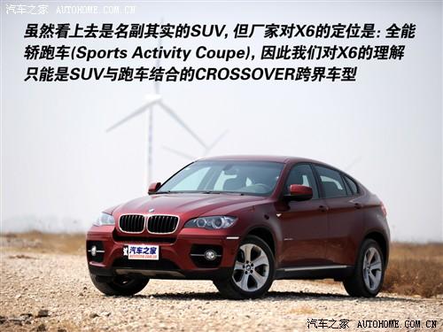 跨界的概念最早出现在尺寸比较小的车上,例如我们接触较早的SX4和CROSS POLO,但谁也没有规定只有小车才能跨界吧?现在跨界的概念已经延伸到了SUV和跑车领域,那么今天我们体验的宝马X6是怎么跨界的呢?厂家说它是一款全能轿跑车,或者说是一款具备越野功能的轿跑车,所以我们可以认为它是一款SUV和轿跑车跨界的车型。