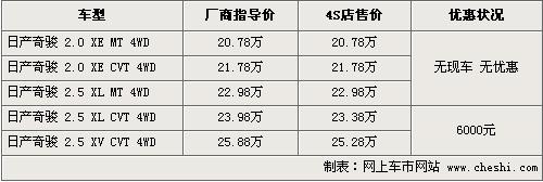 奇骏自去年11月上市以来一直备受消费者关注。国产后的奇骏填补了东风日产在SUV领域的空白,为那些对越野性有更多需求的城市SUV消费者提供了更多的选择机会。根据网上车市价格监测系统显示,奇骏现车供应仍然比较紧张,只有2.5两款车型有现车供应,其他三款车需要消费者预订。目前消费者购买2.5排量车型,最高可享受到6000元的现金优惠。