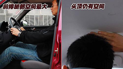 将前排座椅调到最后,虽然保证了身材高大的消费者能拥有充足的腿部空间,但偏小的坐垫对腿部支撑性不足也更加明显。力帆320的车顶采用平顶设计,前后排的头部空间都是一样的。图中的模特身高1.78米左右,可以看的出来头部空间仍比较富裕,不会显得很压抑。
