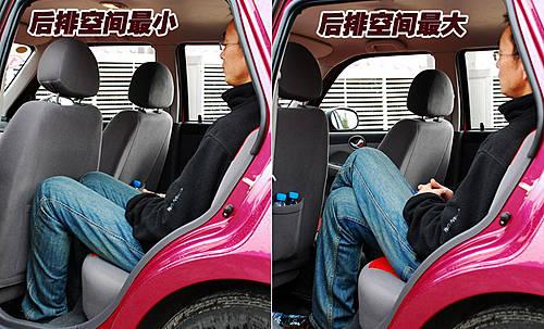 力帆320在内部空间表现最好的应该是后排的腿部空间,从图中可以看的出来。将前排座椅调到最后,使后排达到最小的腿部空间,这时坐在后排的乘客也不会感觉太多紧促感。而当后排的腿部空间最大的时候,后排乘客的乘坐舒适性更加优秀,宽大的空间让人很难相信这是一款微型轿车。