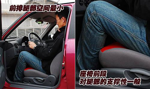 力帆320前排座椅采用包裹性较强的织布运动型座椅,靠背对身体的包裹性非常不错。但座椅坐垫比较窄小,对腿部的支撑性还是感觉不太到位,但作为一款微型轿车,我们并不能要求太多。