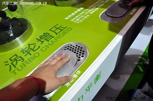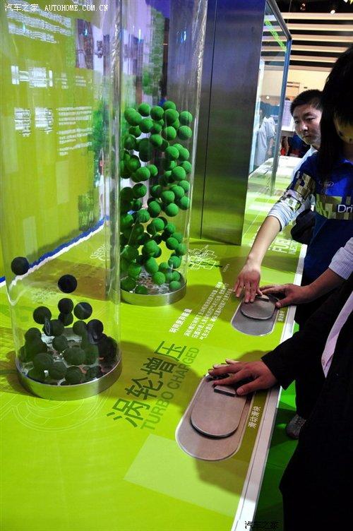 在福特的展台,为了向大家演示福特的涡轮增压技术,福特特意设计了这个对比“吹小球”的装置告诉大家:有涡轮增压器的车型会比普通车型拥有更大的进气压力。