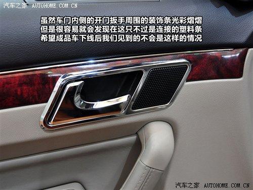 虽然车门内侧的开门扳手周围的装饰条光彩熠熠,但是很容易就会发现在这只不过是连接的塑料条,希望成品车下线后我们见到的不会是这样的情况。在车门上专门用于侧窗玻璃除霜的出风口设计比较贴心,终于在我们自己的产品中看到了这种人性化度较高的设计。这个小出风口在车内外温差较大时,玻璃上的雾气对驾驶安全有很大影响,所以保持该区域内的清透非常有必要。