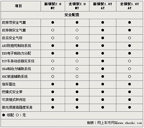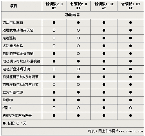 新领驭车型虽然经过上海大众重新开发,但在内部装备方面较老款领驭车型没有本质提升。新领驭2.0排量入门车型除较老款车型增配了自动感应式无骨雨刷外,两款车没有任何区别。而新老领驭1.8T主推车型的配置也只体现在CD音响等方面。至于新老领驭车型您到底会选择谁,这还要看您的个人喜好了。