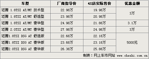 据一汽大众北京地区4S店销售人员介绍,目前老款的迈腾车型数量已经不多了,只有少量1.8T和2.0车型。新款DSG版本车型目前在售的有三款,包括了1.8TSI自动档舒适版和豪华版,以及2.0TSI 自动豪华版。新款售价相比老款有一定幅度的降低,但性价比更高。目前购买新款车型的消费者,也可以有5000元的现金优惠。