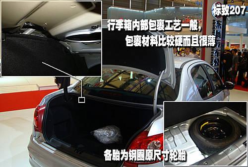 标致207的随车工具就放在备胎的旁边,相比之前三款车型单独设计的工具箱而言成本明显更加低廉一些。其行李箱内部的包裹材料质地很硬并且厚度也明显相比前三款车型更薄。