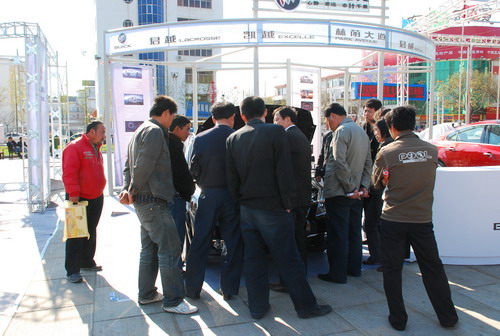 百强巡展文登站的现场,上海通用别克的展位两天来一直是人源不断,消费者在详细的咨询,经销商全天都在不停的讲解,现场的销售场面是一片火热。据该参展经销商介绍,他们近期推出的现金优惠吸引了很多消费者购买新车,效果非常明显,本月的销售任务早已完成,但想买车的消费者还是络绎不绝,相信4月份他们会有一个很好的销量。
