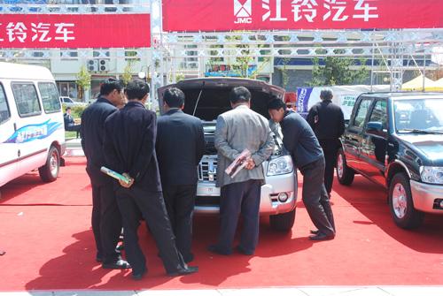 2009全国百强县市汽车巡展文登站活动于4月25日盛大开幕,巡展现场江铃汽车高大气派的精装展位吸引了现场所有人的目光,纷纷前往看车、咨询,展位内的6款新车是江铃汽车全系产品的精华代表,但车前却标示着两家不同经销商的名称与联系方式,这引起了笔者的好奇,于是笔者就此事向百强巡展组委会的工作人员进行了采访、了解。