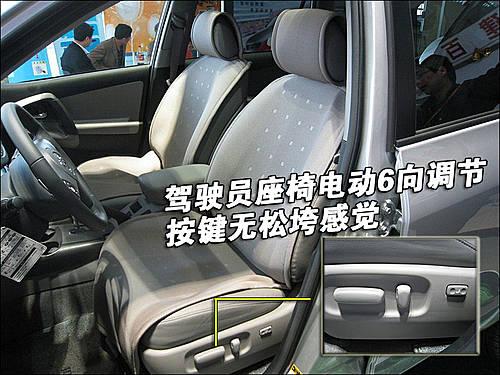 丰田国产RAV4整车座椅均采用真皮材料,驾驶席座椅前后、靠背角度、座椅高度为电动调节。各按钮四周做工较细致,无任何松垮感觉。