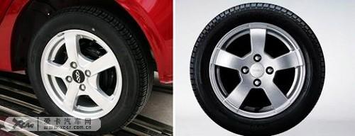 车轮配备方面,瑞麒M1和功夫熊猫都采用了五幅铝合金轮毂而奇瑞采用的是175/60 R14胎熊猫采用的是165/60R14,刹车系统都采用的是前盘后鼓,没有多少亮点,单从这一点来看吉利的胎稍微小一点。