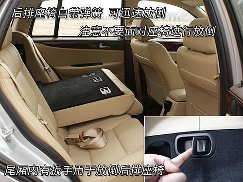 后排座椅可以由后备箱内的拉手释放,自动依弹性放倒。这里我们建议不要正面进行放倒动作,以免被座椅的弹性伤害。