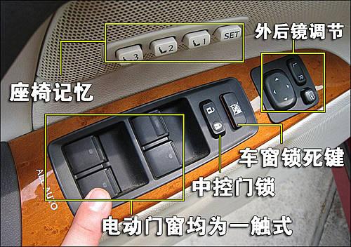 IS300的四门车窗都为一触式升降设计,后视镜采用电动调节,并且具有自动折叠功能。车门内板上配有座椅记忆共能。