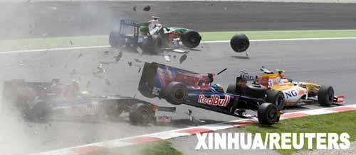 F1西班牙站:四赛车连环撞 碎片及轮胎"满天飞"——中新网