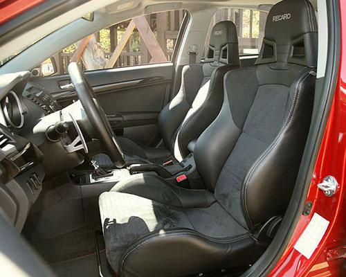 座舱要让我赞赏的配备,我首推这组RECARO桶椅。就设计来看,这组桶椅采中央麂皮与两侧皮格混搭,加上颈部碳纤维材质所组成的RECARO运动桶椅,搭配灰黑色调后,整体视觉走冷硬路线,颇能呼应EVO X简洁的座舱调性。