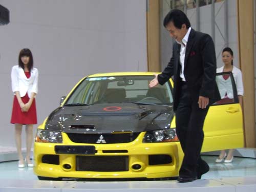 作为国际巨星的成龙始终笑容满面,在现场非常尽责的给大家介绍三菱的两大明星产品——三菱戈蓝和LANCER EVO成龙纪念版,边说边步向戈蓝并打开车门坐进驾驶室为大家讲解起来。
