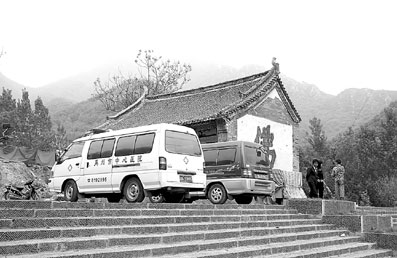 4月21日是周六,笔者在河南省禹州市鸠山乡大洪寨旅游风景区看到,乘公车来旅游的人不少。入口处的大弘法寺门前的一个平台上就停有几辆公车。这些车辆除小轿车外,还有120急救车等。(张燕军)