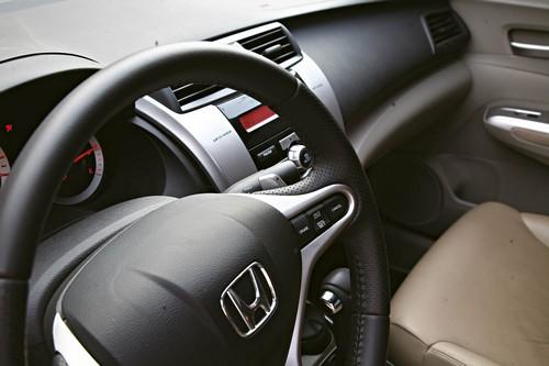 锋范中控台的样式比较规整,各功能区域划分明显,一些常用的按键还被刻意放大,提升了实用性,但相比新飞度非对称布局的中控台要显得中庸了不少。另外,变速器面板的样式有很明显的上一代车型的影子,而蓝牙系统的位置如同第七代雅阁一样被安置在驾驶员侧的A柱上。