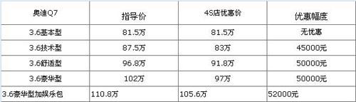 小编点评:对SUV来说,没有哪项技术比全时四驱技术更为重要,而奥迪Q7配备了全球顶尖的奥迪新一代quattro全时四驱技术,仅此一点就使奥迪Q7不仅在越野性、运动性和主动安全性方面超越了以往任何一款SUV,而且将使奥迪Q7在可预见的未来令对手望尘莫及;全球顶尖的350马力(257千瓦/6800转)8缸4.2 FSI汽油直喷式发动机,使奥迪Q7在动力方面高出同级别对手一筹。