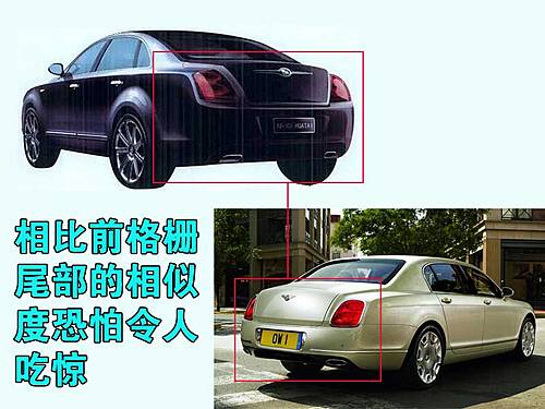 来到车尾,华泰C级车要比前脸更夸张,与宾利欧陆飞驰的尾部设计非常的相似,整体式的后尾灯,双尾管镀铬设计都完全一样。