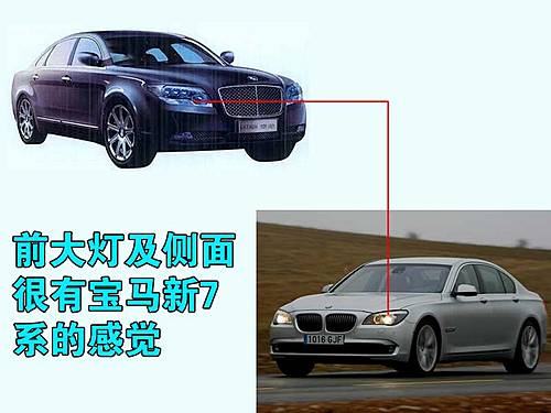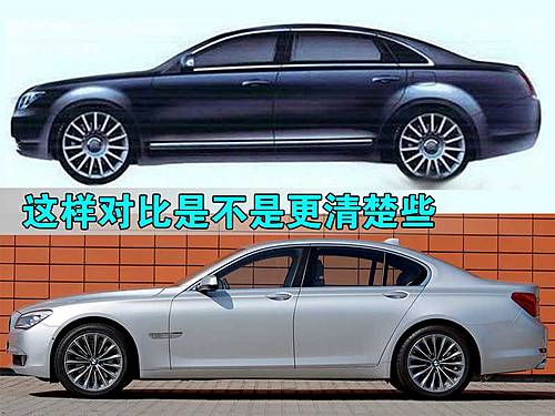 从侧面看,能够更直观看出它与宝马7系的相似度,同样的车顶弧线、高腰线,甚至连多辐轮毂都相当神似,不过宝马所推崇的后窗内旋弧度没有被搬走。