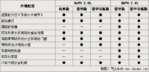 2009年4月10日,以先行进口引入中国最终在国内实现本地化生产的丰田RAV4,正式登陆中国汽车市场上市销售。准备购买这一车型的消费者,在面对着这一拥有2.0L与2.4L两种排量共计10款车型,售价从18.98万元至26.43万元的国产RAV4,难免会看得眼花缭乱不知从何下手“十选一”挑出一台适合自己的新车。通过对以下国产RAV4十款车型配置差异的解析,或许您会找到答案。
