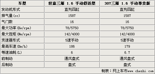 东风雪铁龙世嘉三厢和标致307动力系统相同,都是1.6升直列4缸发动机并且同时运用了电子节气门技术,该技术可以能根据驾驶员的需求愿望以及整车各种行驶状况确定节气门的最佳开度,,确保了车辆最佳的动力性和燃油经济性。两款车型的动力输出完全一样,但是由于各自的整备质量和设计不同,所以在最高时速和油耗上有所区别。两款车型的变速系统均是5速手动变速箱。制动方式两款车型均为前通风盘式后实心盘式的刹车。